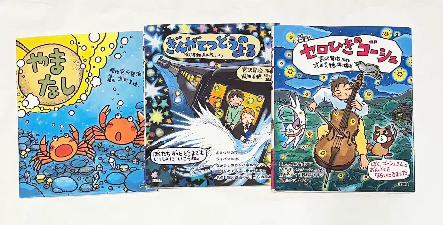 - 武田美穂さんの「えほん宮沢賢治ワールド」はテンポ良く読める構成で、低学年の子どもにも非常に人気。